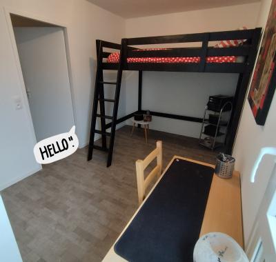 Chambre 10 m2 placard intégré , lit 140 literie impeccable avec surmatelas et protection