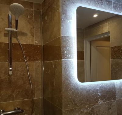 Travaux terminés pour une grande chambre avec lit de 160 Bureau et télé grand écran. Salle de b...