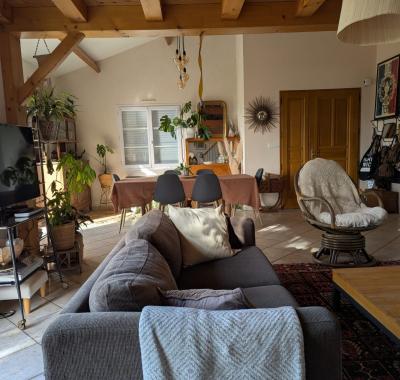 Nous vous proposons une chambre à l'étage de notre maison au calme avec grand terrain et terras...