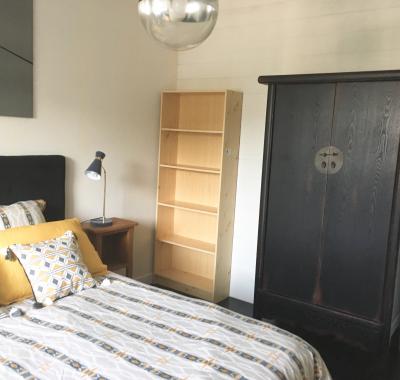 Chambre de 12m2 au 1er étage avec lit 140, table de travail, accès internet, penderie et grande...