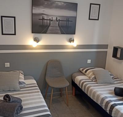 Nous proposons 1 chambre avec 2 lits 1pers. Elle se partage 1 SDB et 1 WC, avec 1 autre chambre...