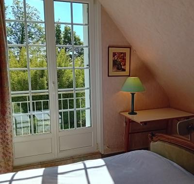 Grand chambre dans un duplex avec coin salon et bureau vue sur rivière