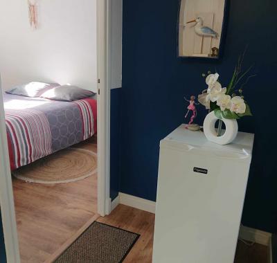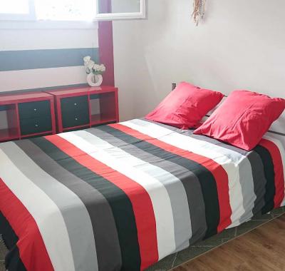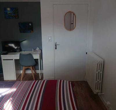 Nous proposons une chambre meublée avec lit double (140 cm), rangements, draps et serviettes fo...