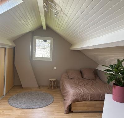 chambre , 1er etage donnant sur jardin , plein sud.salle de bain et wc à partager .bouilloire e...