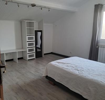 Chambre de 12 M2 avec balcon. Lit 140 avec armoire, meuble bas, accès libre cuisine équipée av...