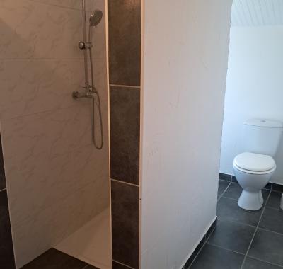 Chambre a l etage avec salle de douche et wc. Lit en 140×190. Bureau dans la chambre. Chambre ...
