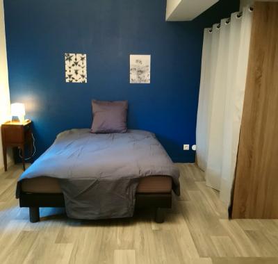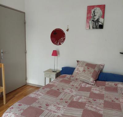 Chambre lit 2 places avec bureau, télévision, calme, à disposition une cuisine, un lave linge, ...