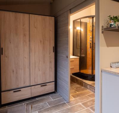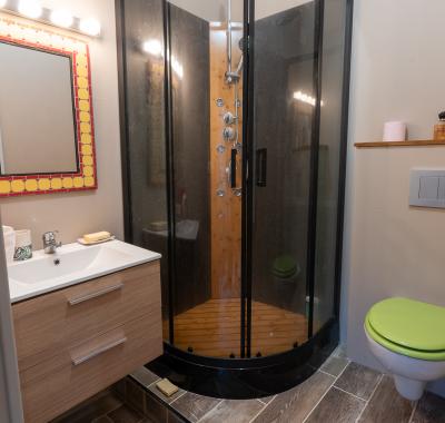 chambre avec lit de personne , commode, armoire, télévision salle d'eau avec douche italienne...