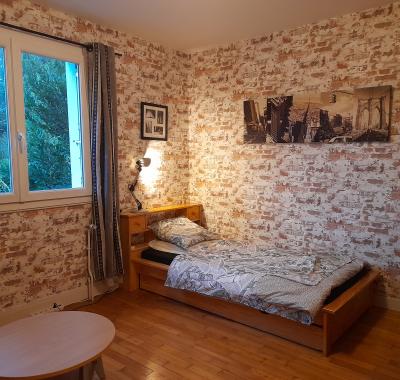 Chambre située à l'étage d'une maison individuelle, exposée sud et donnant sur le jardin. Quart...