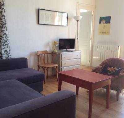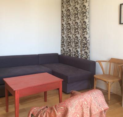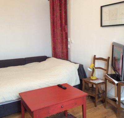 Petite cuisine séparée de la pièce à vivre. Canapé lit. Salle de bain. Appartement au premie...