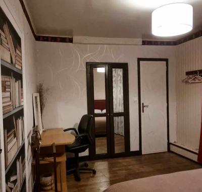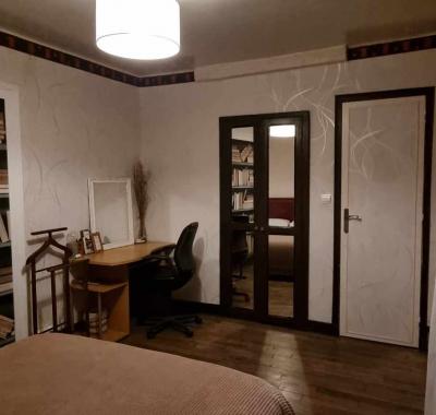 Loue chambre chaleureuse et calme dans une maison avec 1 grand lit, armoire, chevet, , bureau,...