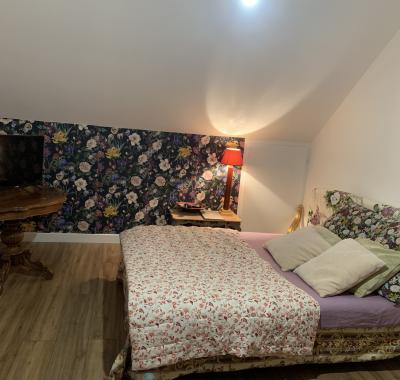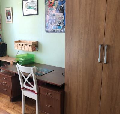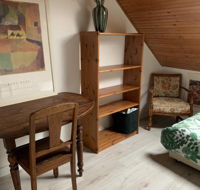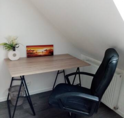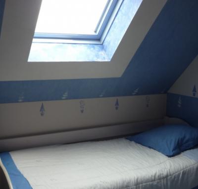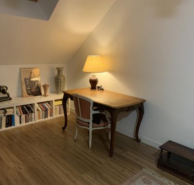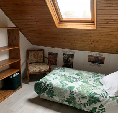Je propose une chambre à l’étage de ma maison. La chambre a un grand lit, une armoire et un bur...