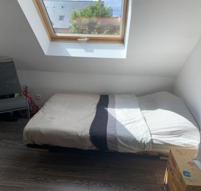 Nous louons une jolie chambre de 15 m 2 meublée, située dans notre maison individuelle à l'étag...