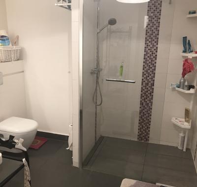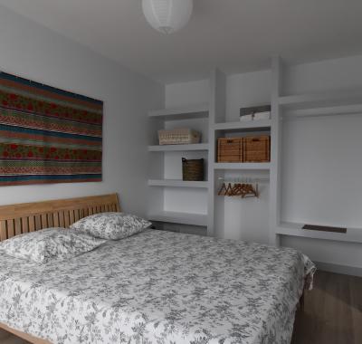 La chambre fait 12m2, une penderie, un lit double 140x200. Accès à la salle de douche, à la cui...