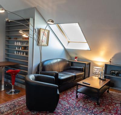 Appartement de 2 pièces, sous les toits, avec salle de bain privée.