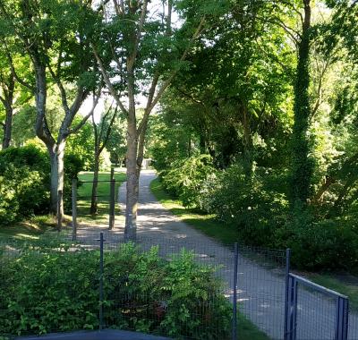 Notre maison donne directement sur un parc boisé avec plan d'eau et équipé d'un parcours sporti...