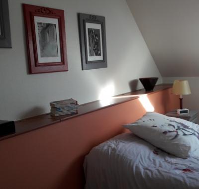 Chambre chez l’habitant, située à l'étage de la maison.Lit 140 cm, bureau chevet rangement réfr...