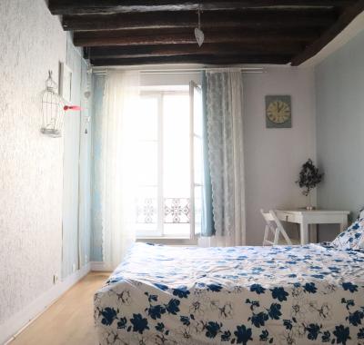 Chambre bleue pour étudiante, longue durée, chez l’habitant