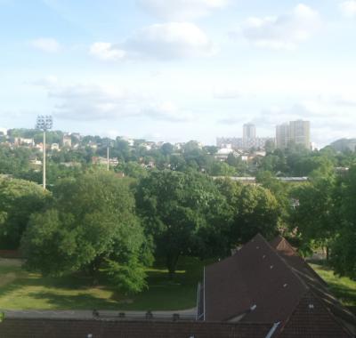 Propose à la sous-location une chambre lumineuse et confortable de 12 m2 avec une grande baie v...
