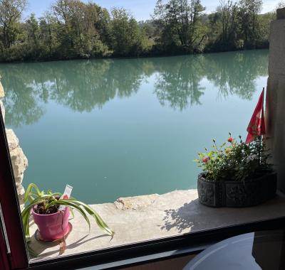 entrée autonome de plein pied, maison pied dans l'eau au bord du Rhône, wc, douche séparé de la...