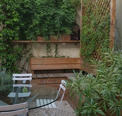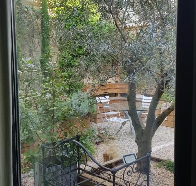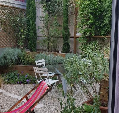 JO Dans grand loft deux chambres 3 personnes sur patio arboré