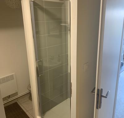 Chambre avec salle de bain partagé avec une seule autre chambre. Cette colocation partage une ...