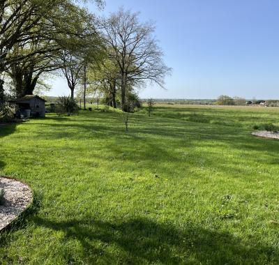 terrain enherbé qui touche notre maison. (10 minutes a pied de l'entrée du festival)