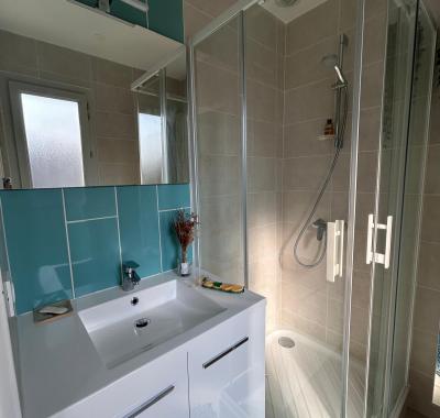 Travaux terminés pour une grande chambre avec lit de 160 Bureau et télé grand écran. Salle de b...