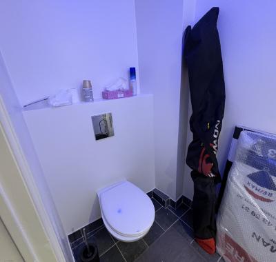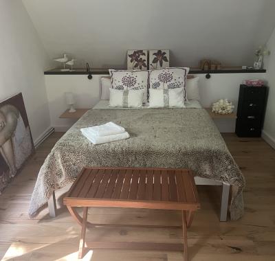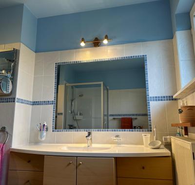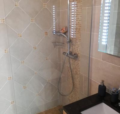 Chambre avec SDB privative avec douche, accès aux pièces communes de la maison : WC, living, c...
