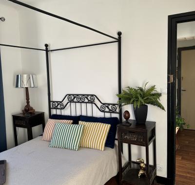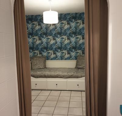 Une chambre avec 1 lit pour 2 et un lit clic clac au salon pour 2 personnes.il y a une sortie d...