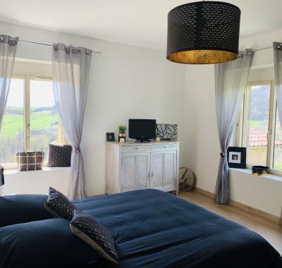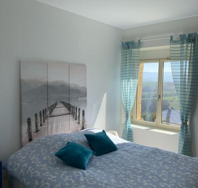 Une chambre deux personnes et une autre une personne vue sur un chateau vue magnifique calme