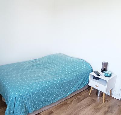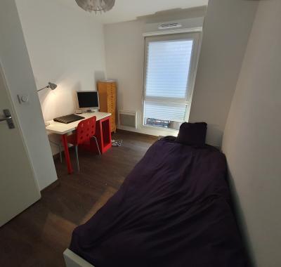 Chambre de 15m2 équipée d'un lit de 140 x190, commode et bureau dans un appartement de 60 m2 "...