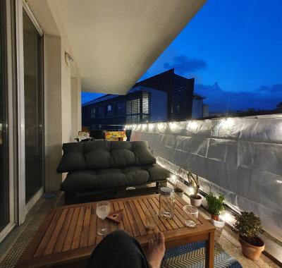 une chambre + espace commune: 2 tarrasses salon cuisine salle de bain toilette...