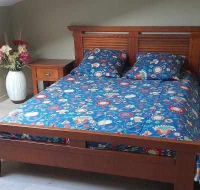 Chambre avec lit en 140 dans une maison de plain-pied, située au calme dans le bourg.