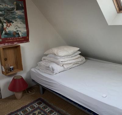 Chambre située à l'étage d'une maison individuelle, exposée sud et donnant sur le jardin. Quart...
