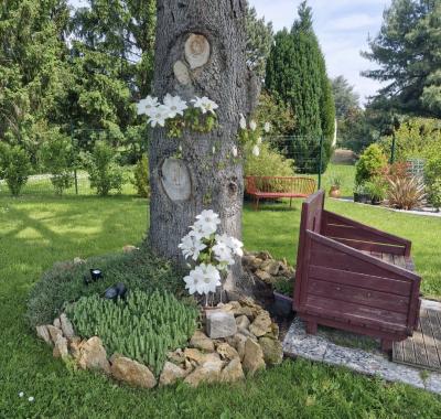Belle maison au milieu d'un grand jardin fleuri et calme.