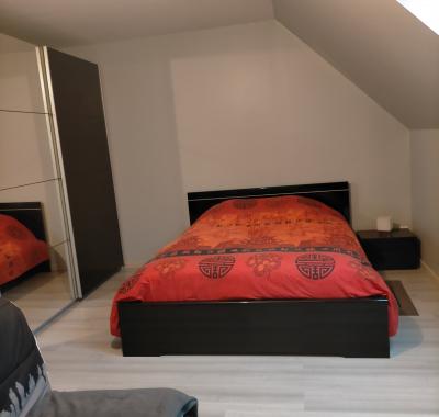 Chambre avec 1 lit 2 places, chevet, armoire et bureau, dans une maison et tout son confort. po...