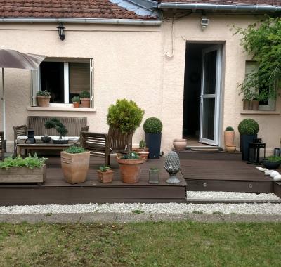 petite maison joli au calme avec grande terrasse jardins devant et derrière la maison tranqui...
