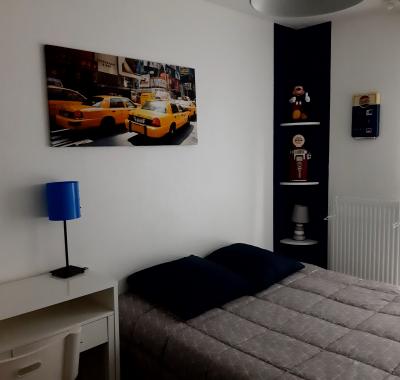 Chambre privative equipée: Tv- dressing- lit 2 personnes-chevet- bureau- commode. Les commodité...