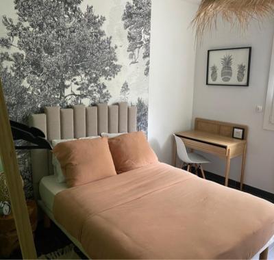 Chambre meublée de 14 m 2 avec un lit double en 140 (drap fourni),