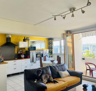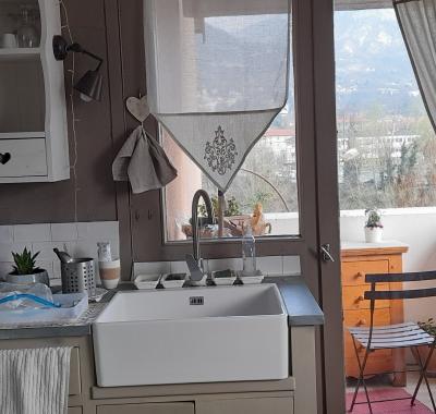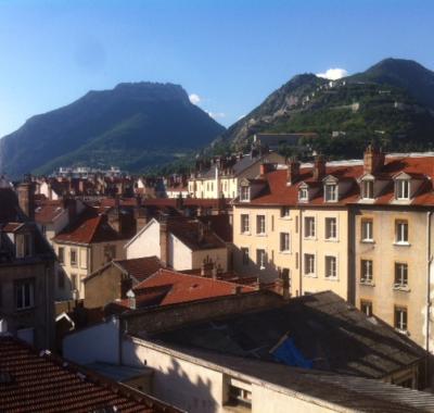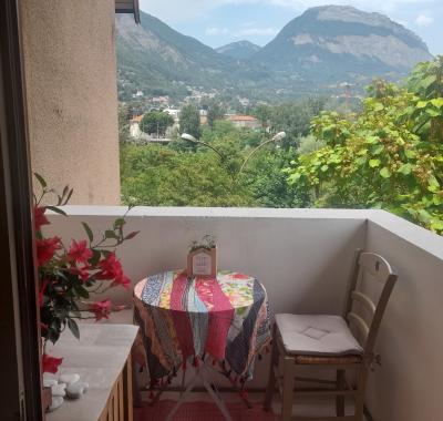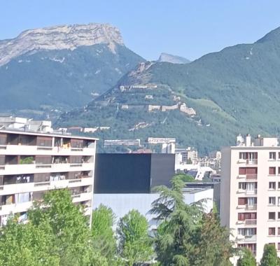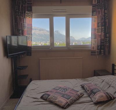 jolie chambre dans appartement, claire, vue sur montagnes, petit balcon.