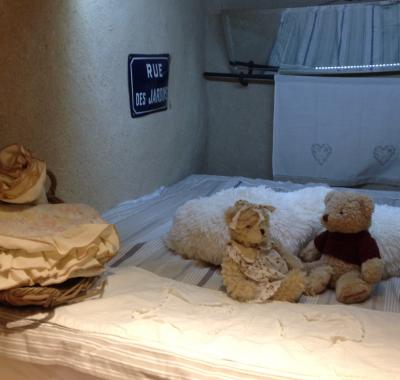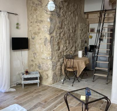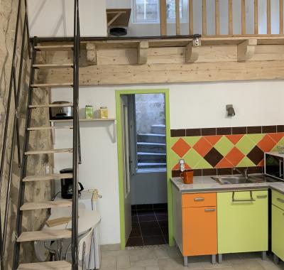 Lieu calme au cœur du village,à l interieur une chambre,couchagel2 personnes ,une piece dortoir...
