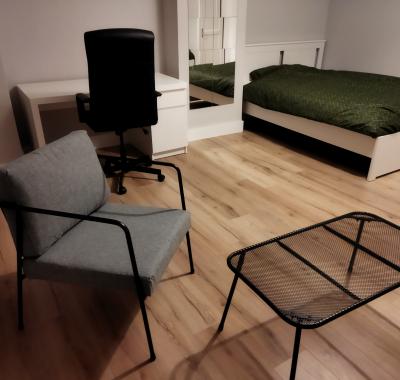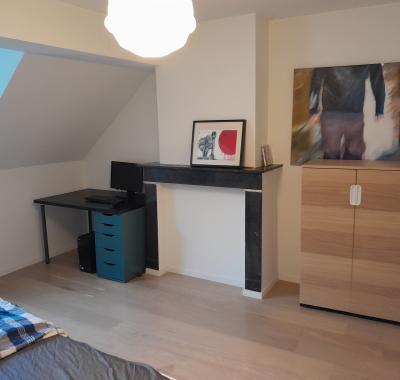 Kamer van 45m2 met aangrenzende badkamer in duplex appartement