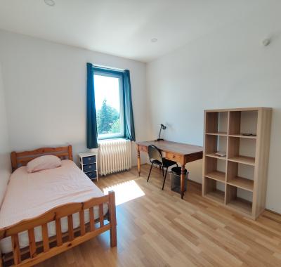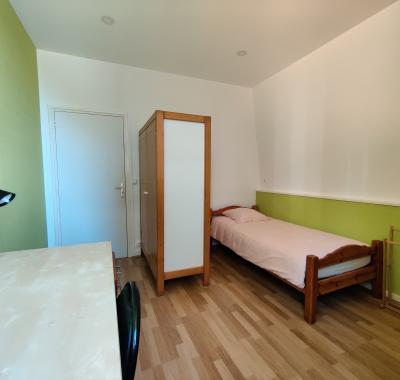 Chambre individuelle 10m2 meublée : lit , armoire , table , deux chaises , grande fenêtre , ch...