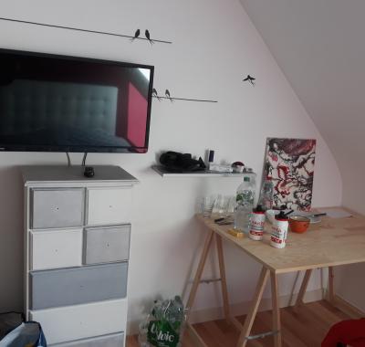 Chambre à l'etage de notre maison.A Disposition frigo four, minifour .parking privé. Bus à 30...