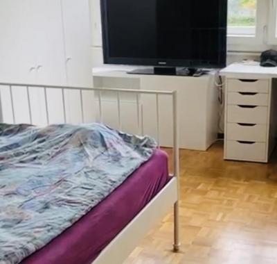 Je loue dans mon appartement une chambre avec lit double, une commode et armoire.