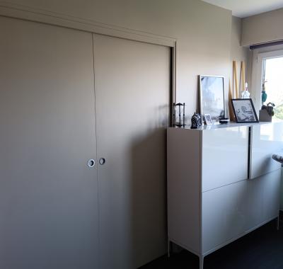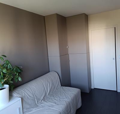 Chambre de 13 m2 avec belle hauteur sous plafond bien équipée (dressing, coin bureau)