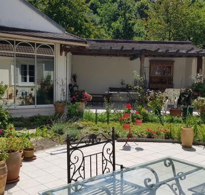 Belle maison au milieu d'un grand jardin fleuri et calme.
