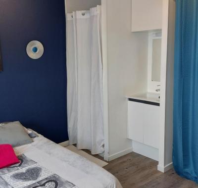 Entrée commune pour grande chambre meublée et salle de bain indépendantes, dans quartier très c...