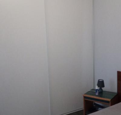 Nous proposons une chambre meublée avec lit double (140 cm), rangements, draps et serviettes fo...
